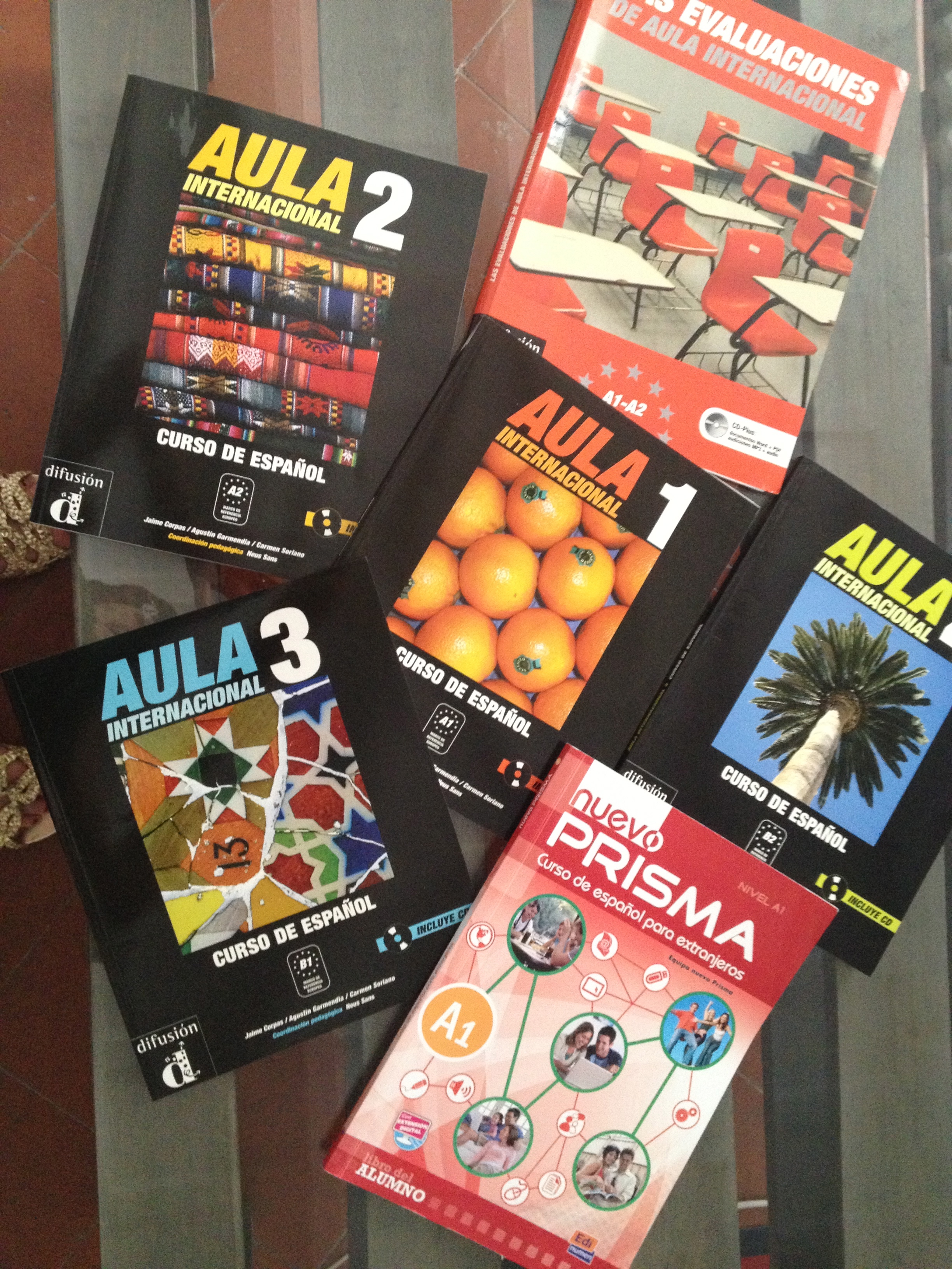 These are our textbooks for the first levels. They contain listening exercises, practicing written and spoken, audio CD, grammar and cultural contents.